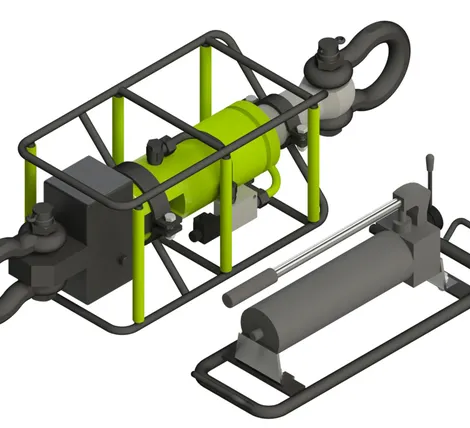 Electro-Hydraulic Trip Protection – Mechanical release after ~100 mm stroke prevents overloads between 3 kN and 300 kN (0.3 t – 30 t).